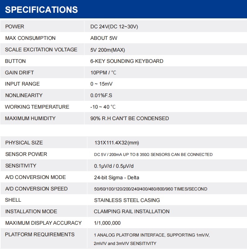 ● Weight-free calibration, editable startup logo, instrument I/O port test and serial port test functions